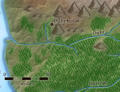 Dubrholm is one of the many independent towns at the base of the Dubrden Peaks mountain range. The area could be considered too cold for people to live in, if it wasn't for a crystal shard in the centre of town providing it with warmth. The shard's origin is unknown and Dubrden inhabitants saw a gift from the gods in it, making life possible where it wouldn't be ordinarily.